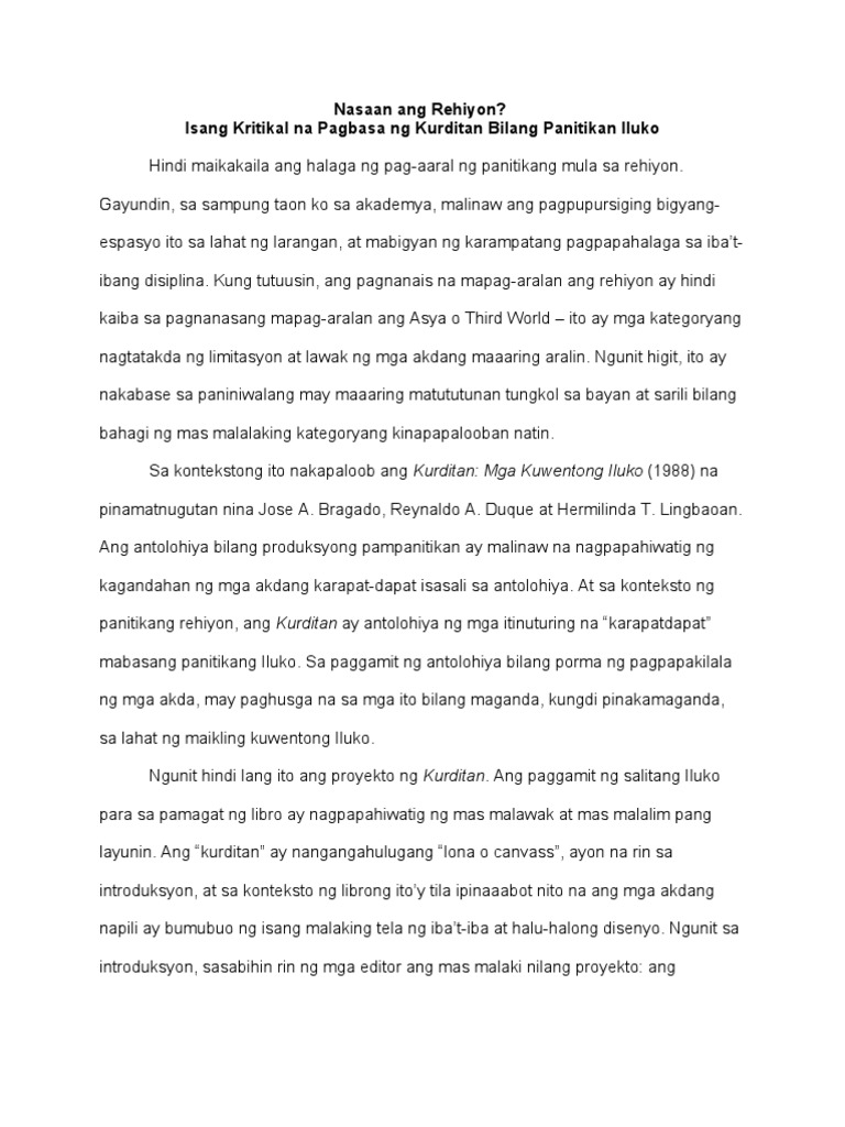 Philippine Regional Literature An Assessment Of Kurditan Pdf