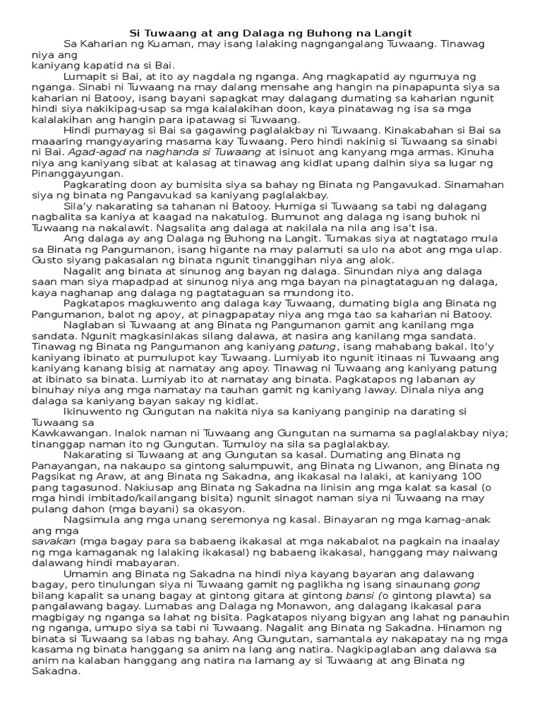 Si Tuwaang At Ang Dalaga Ng Buhong Na Langit Pdf